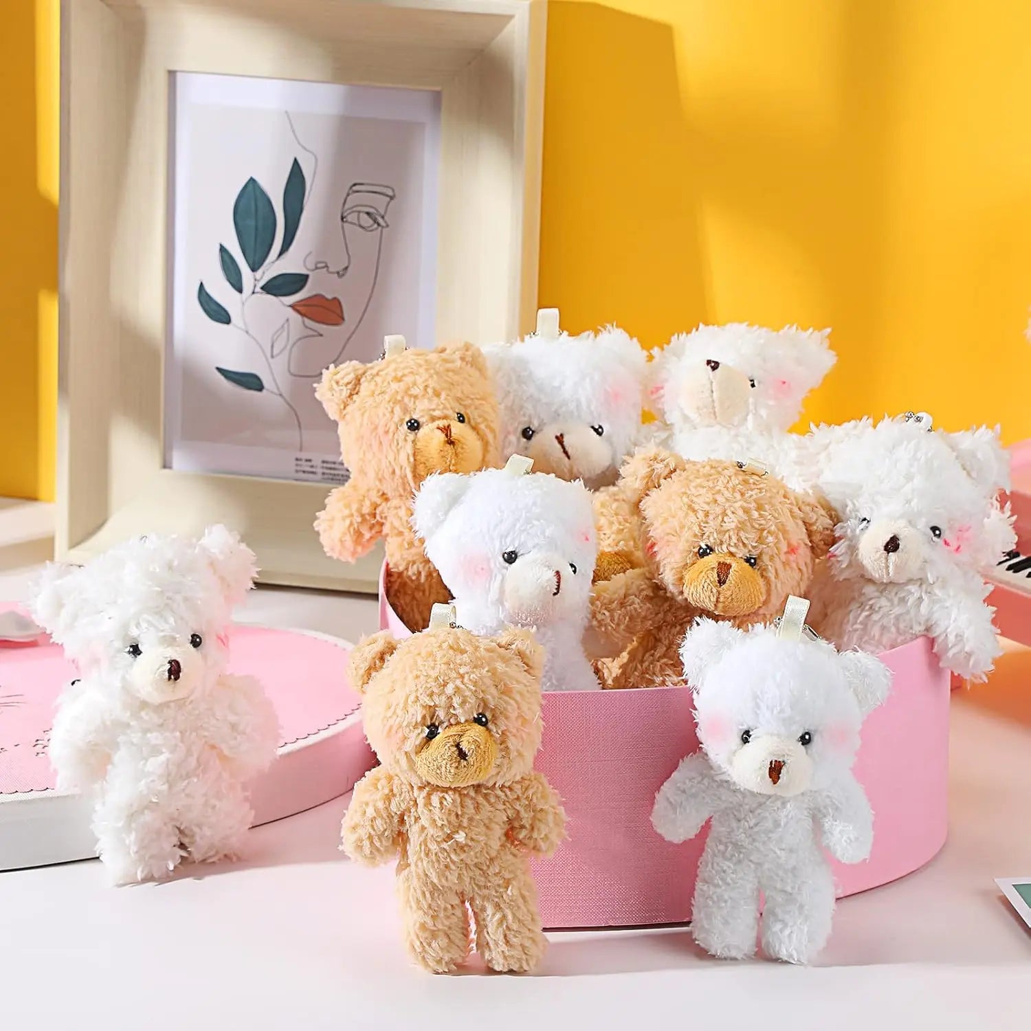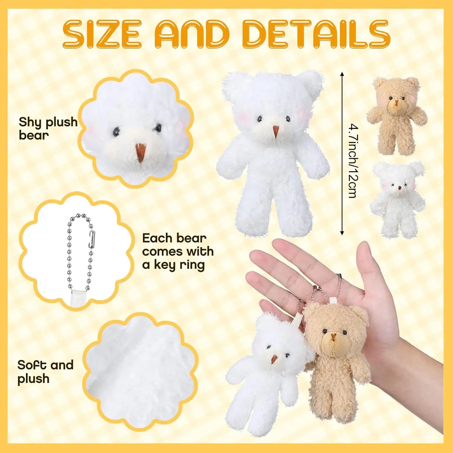 10Pcs/lot Plush Teddy Bears Toys 12cm Cute Animal Stuffed Dolls Kawaii Girl Blush Bear Keychain Christmas Birthday Party Gifts