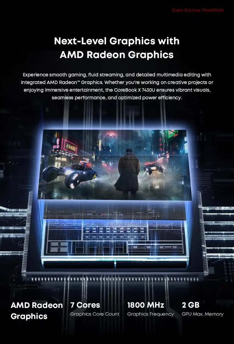 CHUWI CoreBook X Gaming Laptop AMD R5-7430U 16GB DDR4 RAM 512GB SSD 14.1 inch FHD Screen Lightweight Notebook 4.3 GHz Windows 11