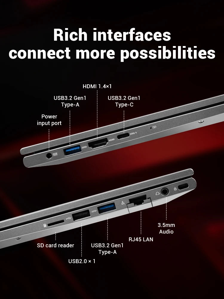 Port: 2×USB 3.1 Gen1 ,1×USB 3.2 Type C,3.5 MM Audio Jack,1xUSB 2.0,RJ-45,HDMI-Compatible