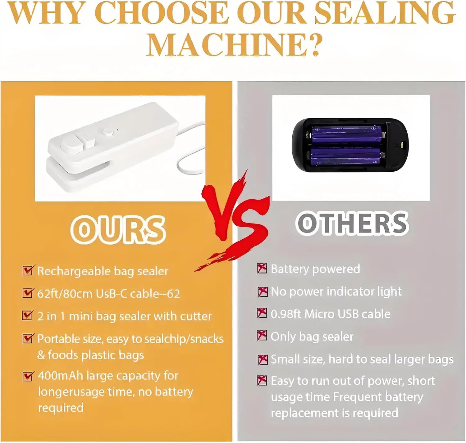 Home Use Rechargeable 2 in1 Bag Sealer Cutter with Magnetic Electric Food Cut and Seal Tool Machine for Tea Chip Bag Heat Reseal