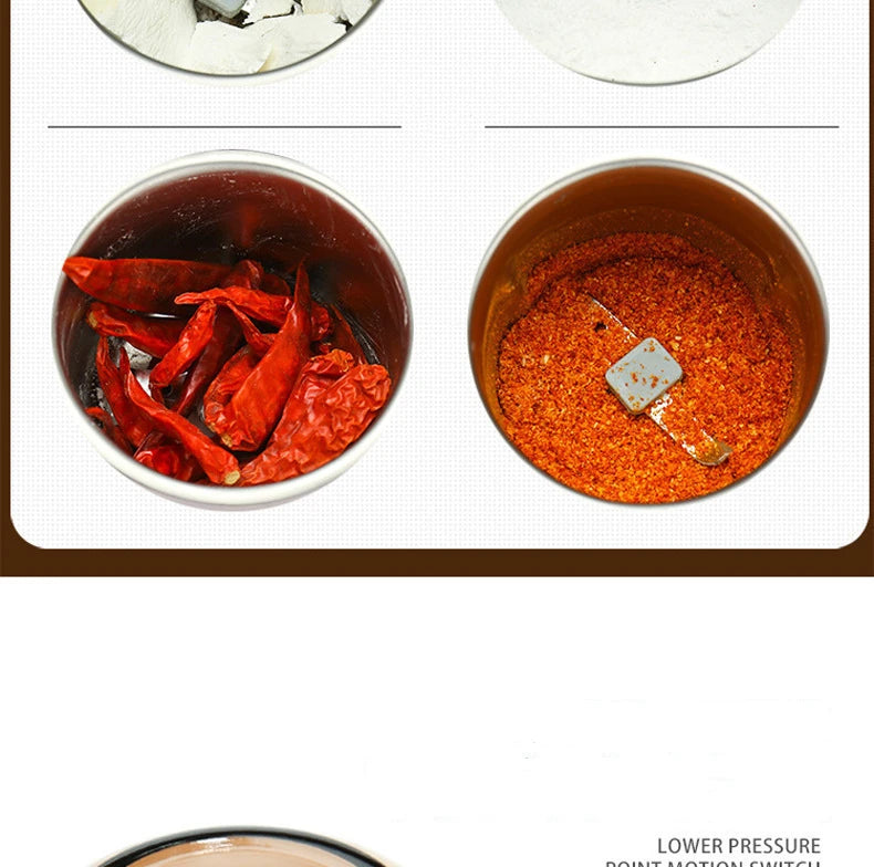 Household electric grinding machine. Household dry grinder, portable coffee machine for grains and miscellaneous grains, grinder