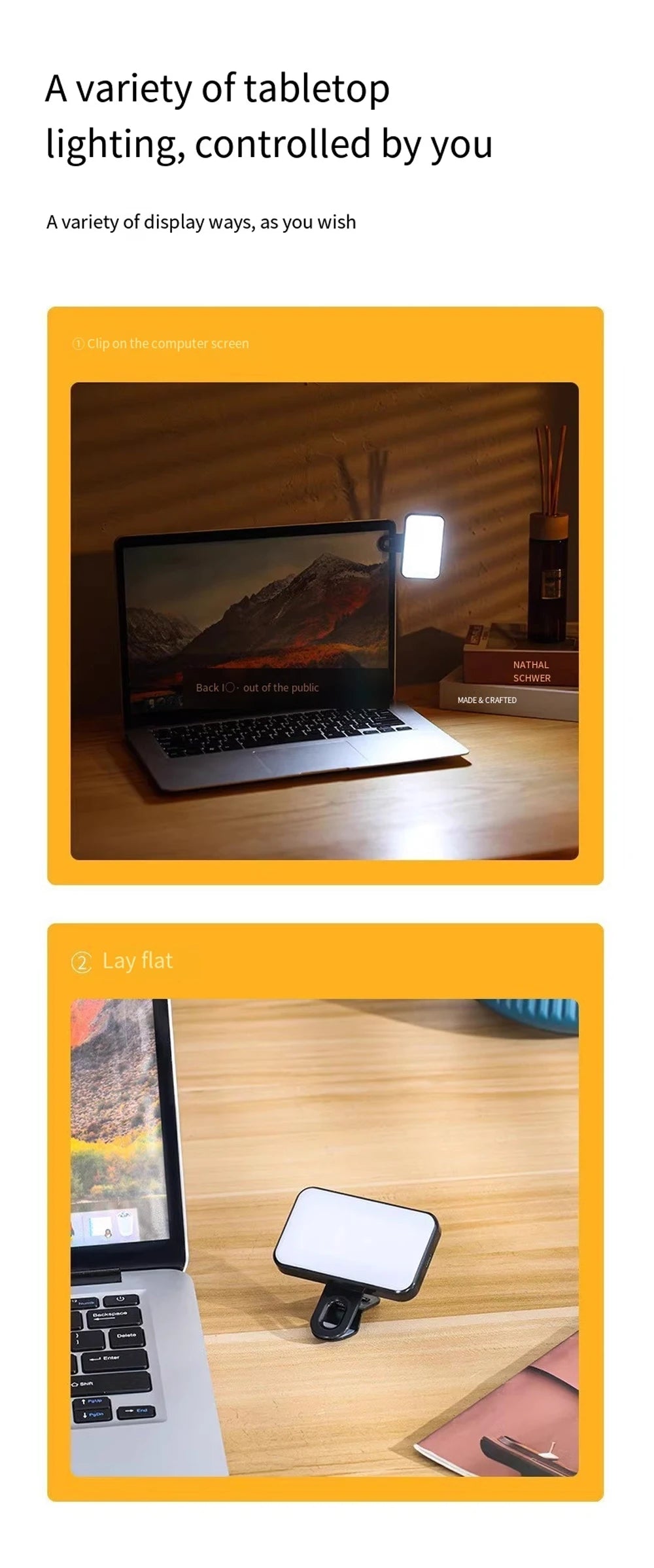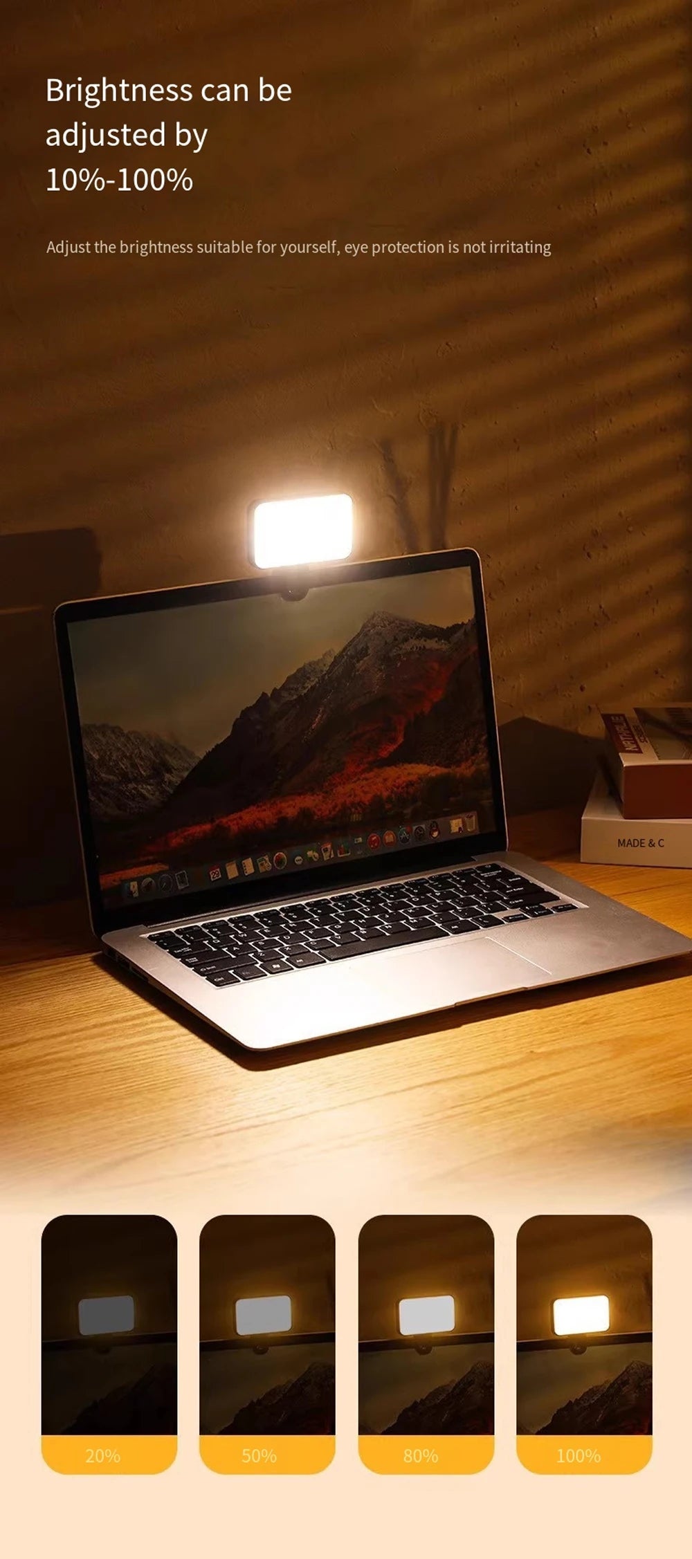 Portable Mini Selfie Fill Light Rechargeable Clip 3 Modes Adjustable Brightness On For Phone Laptop Tablet Meeting Make Up