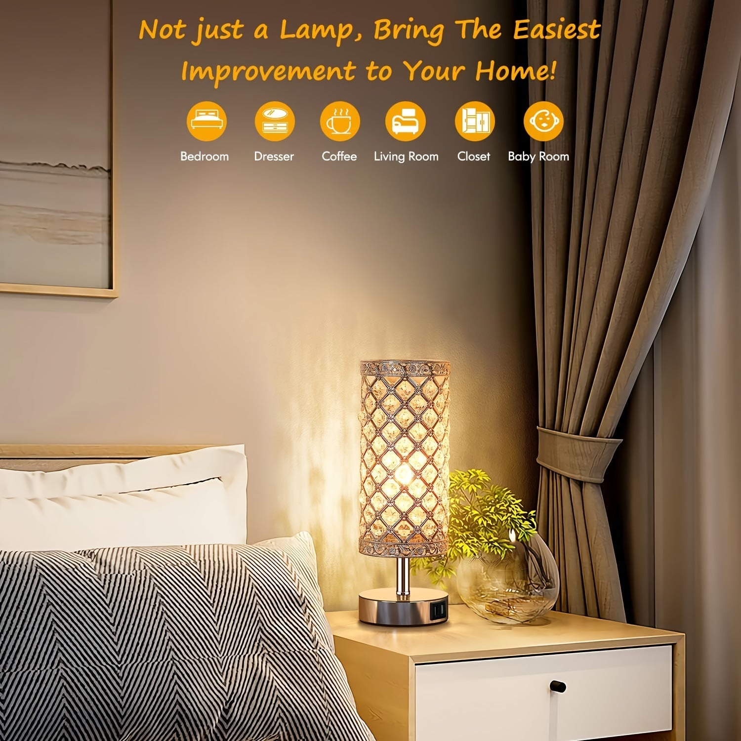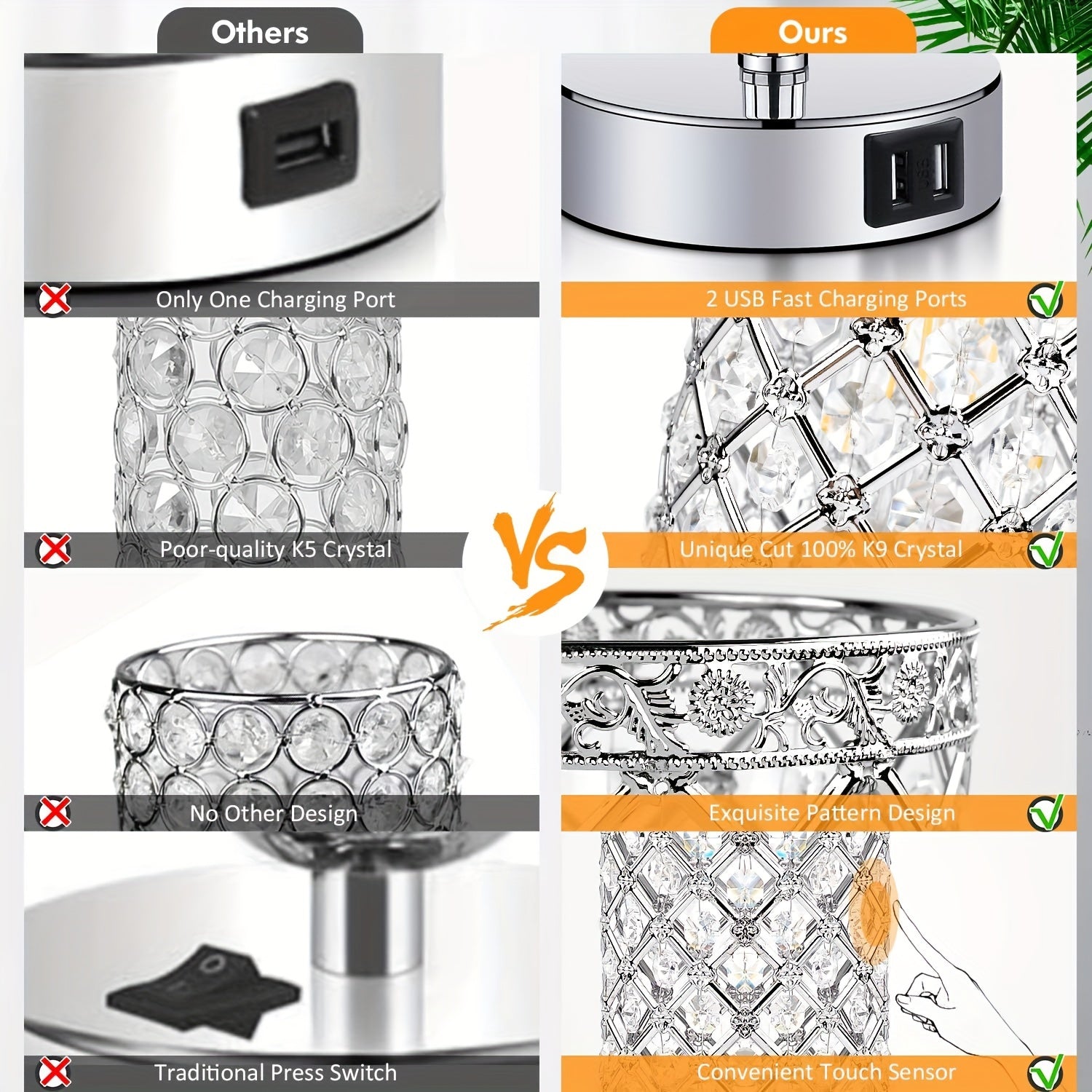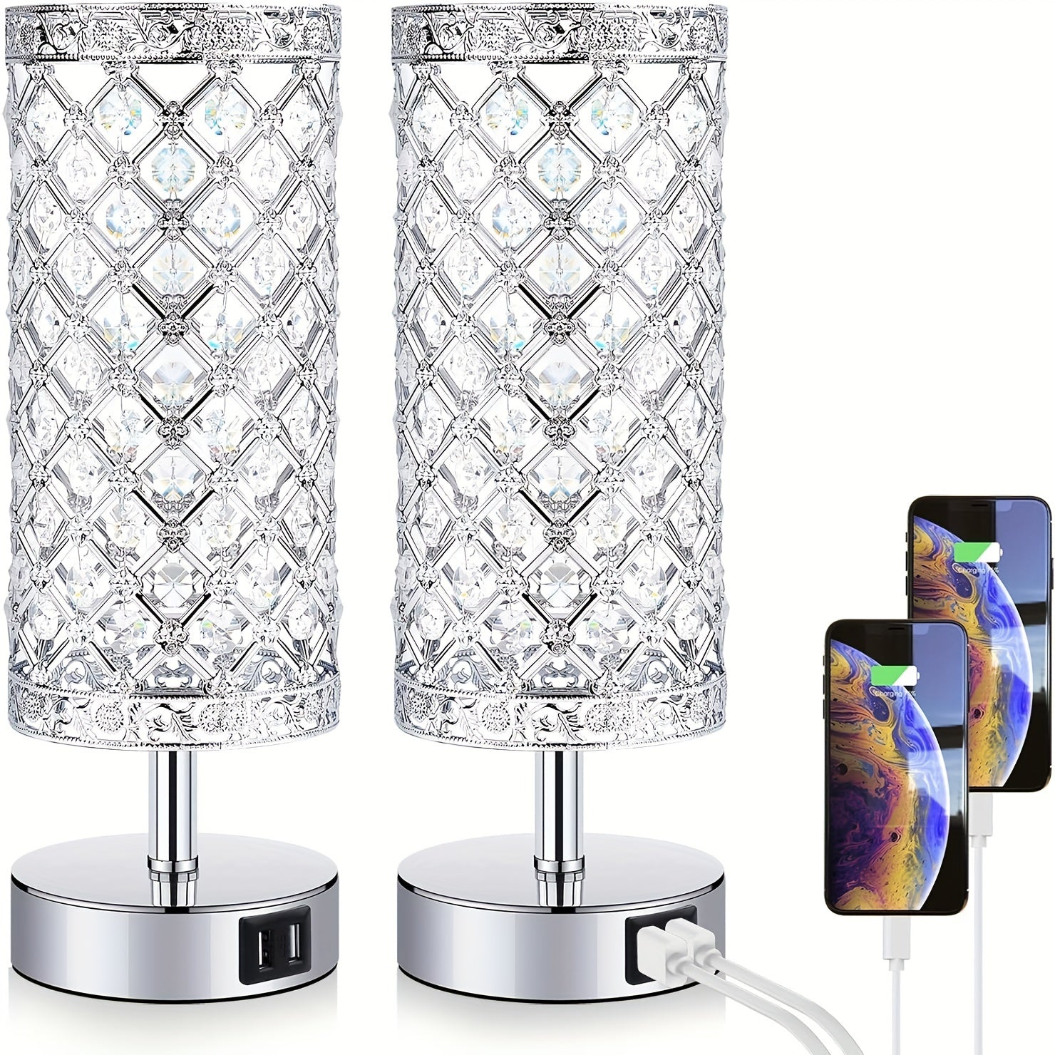 Touch Control Crystal Table Lamp Set of 2 Bedside Nightstand Lamps with 2 USB Charging Ports, 3-Way Dimmable, K9 Crystal Decorative Desk Lamp for Bedroom, Girls Guest Room, Living Room, Bulbs Included