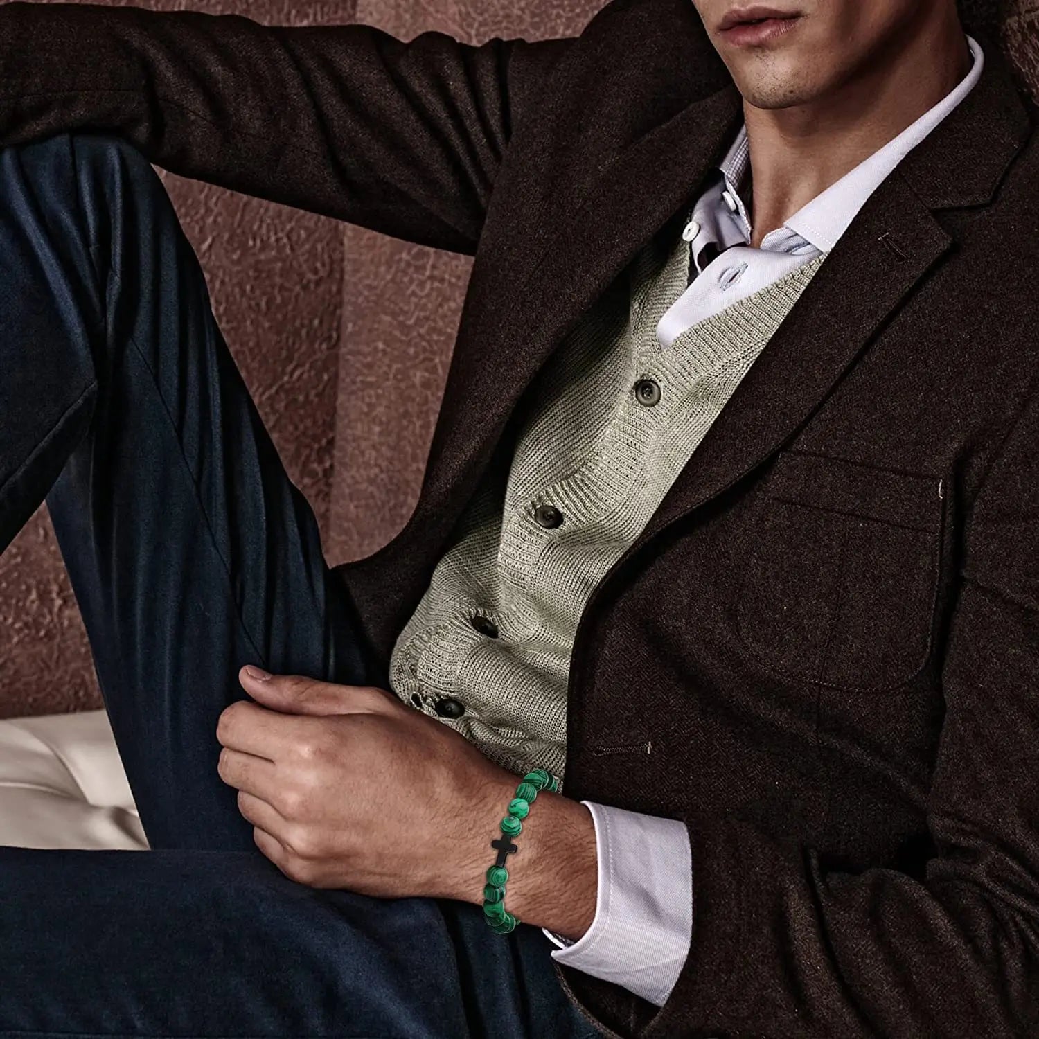 Prayer Men Natural Stone Wood Beads Rosary Hematite Cross Bracelets Onyx Meditation Bracelet Women Yoga Jewelry Homme Pulsera