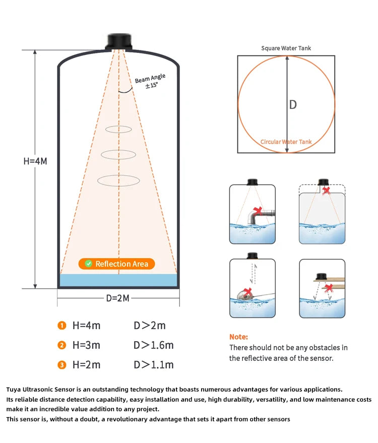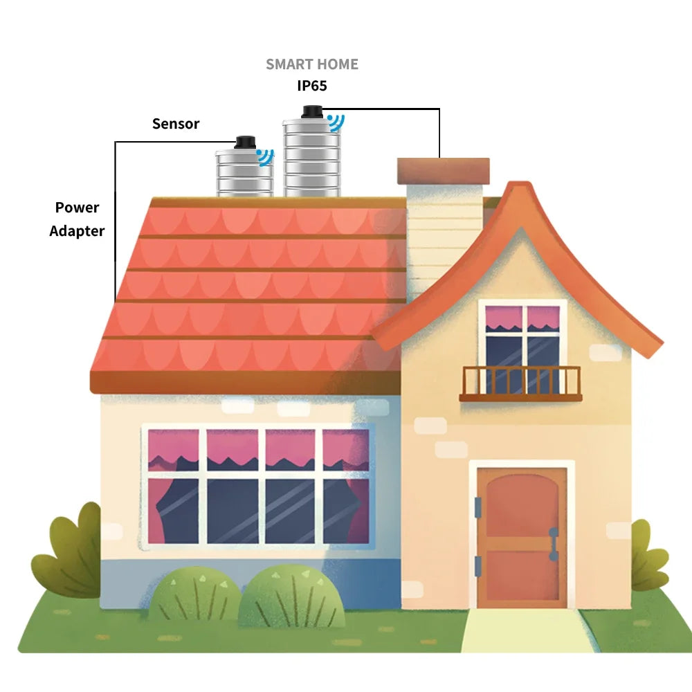 Tuya Smart WiFi Liquid Level Monitor Ultrasonic Water Level Detection High Accuracy WiFi Remote Liquid Level Gauge