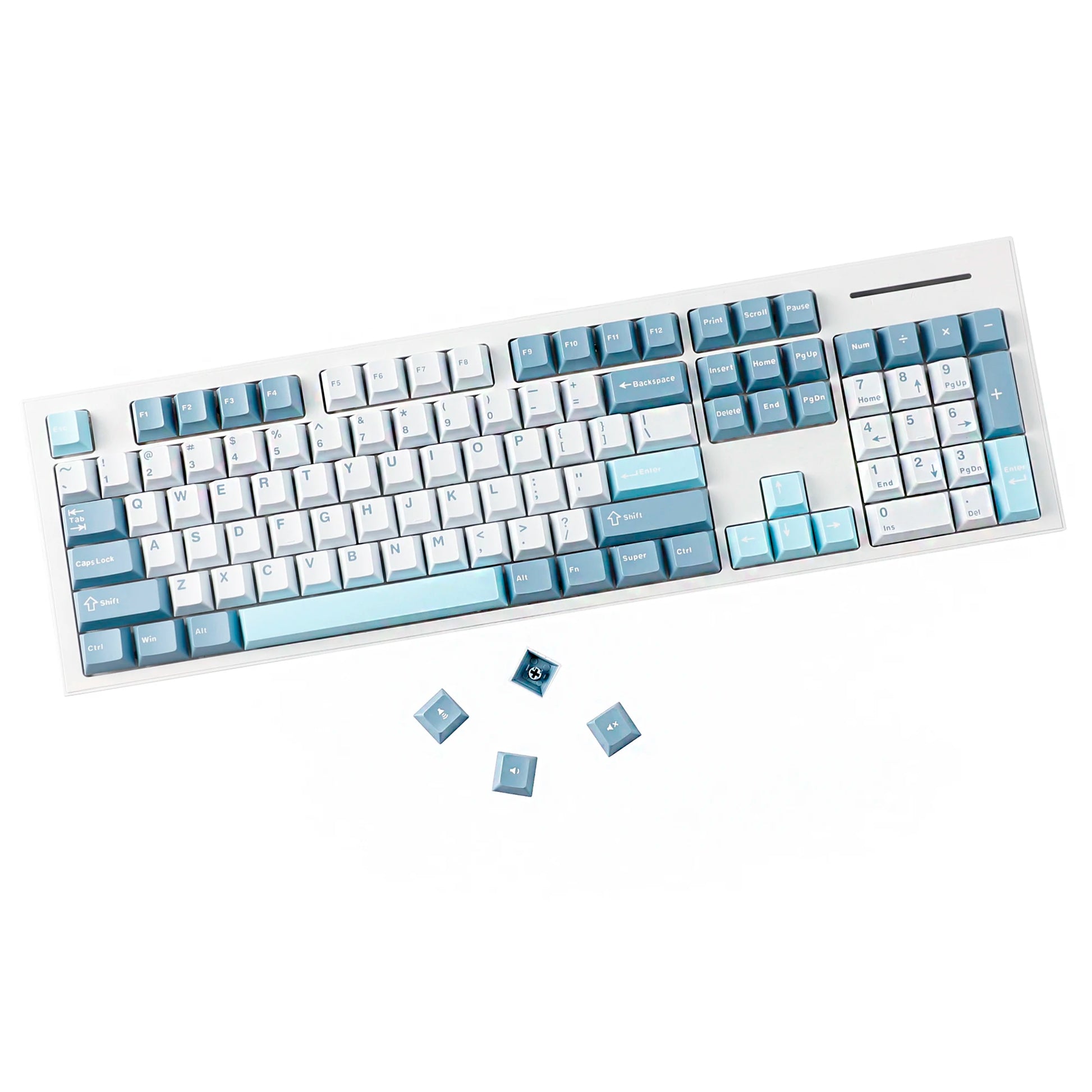 YMDK 126 Keys Cloud Lake White Blue Color Matching Double Shot Cherry Profile PBT Keycaps for Mx Mechanical Keyboard